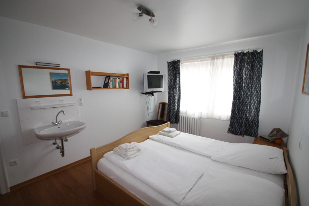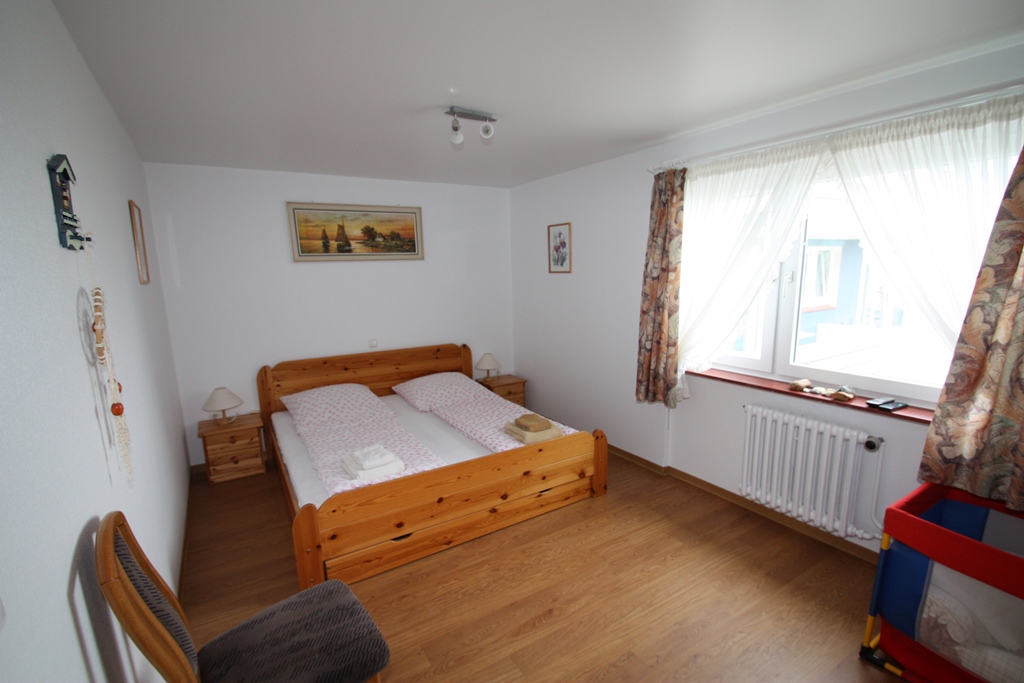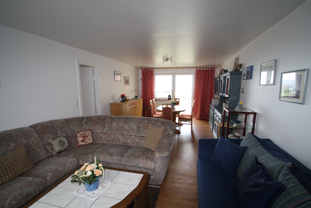 Die Dreiraumwohnung befindet sich im Unterland in ruhiger Lage. Die Größe beträgt ca. 90 qm. Sie besteht aus zwei Schlafzimmern für je zwei Personen, ein Duschbad, ein Flur und einer voll ausgestatteten Küche mit Geschirrspüler u. Balkon, ein großes Wohnzimmer mit Balkon und zwei ausziehbaren Schlafcouchen für je zwei weitere Personen. Terrassenbenutzung für alle Gäste des Hauses. Strandkorb vorhanden, alle Apartments mit Meerblick, Hunde erlaubt.